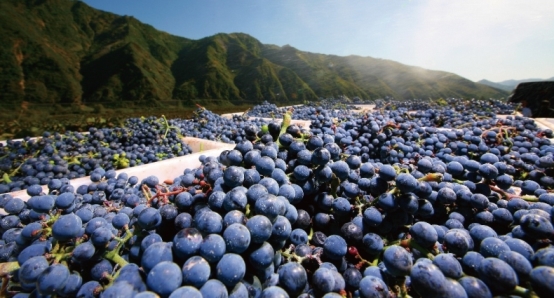 在原料方面,通葡股份坐拥黄金风土稀缺资源。其原料基地位于吉林通化集安(与法国波尔多同处世界葡萄酒黄金纬度带),长白山脉与鸭绿江河谷共同营造约15℃的昼夜温差环境,年日照 2228 小时,生长季降水充沛、成熟期干爽少雨;富硒腐殖土有机质丰富、通透性佳,为“北冰红”“双红”等特有山葡萄品种提供了绝佳的生长土壤,原料获地理标志双重认证,从源头奠定东方风味基础。