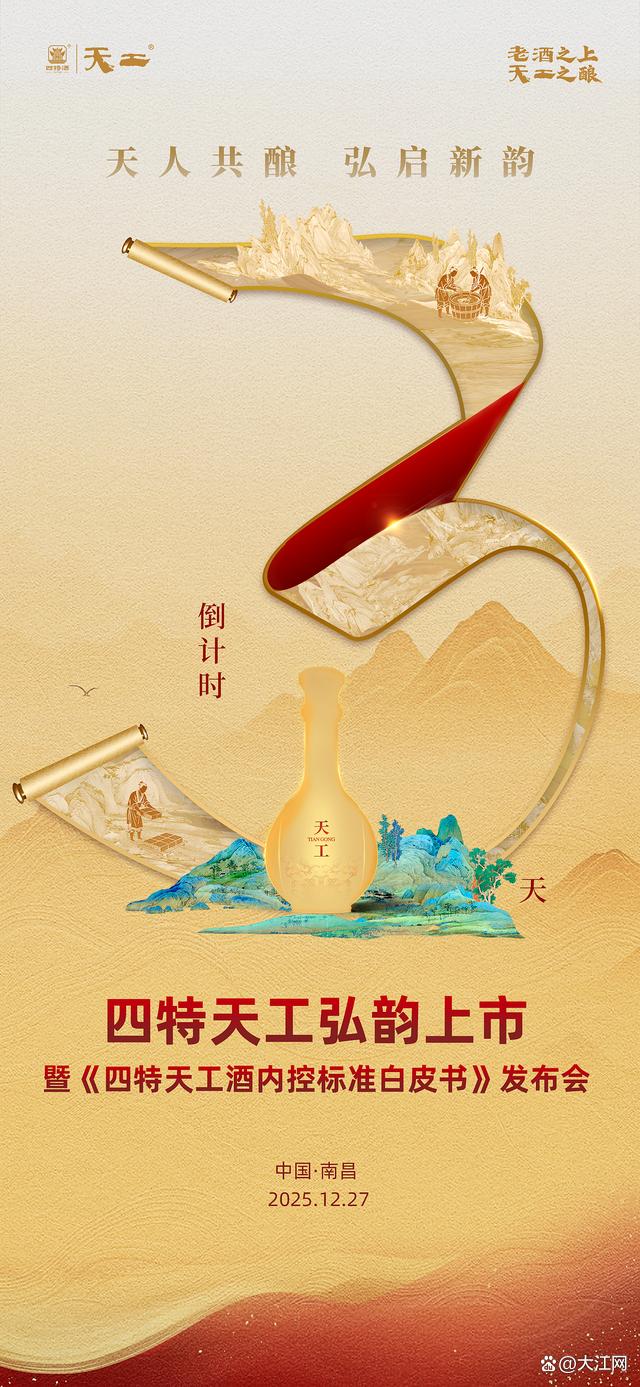 云酒说|2025-12-2412月27日,四特酒有限责任公司将在南昌举行“四特天工弘韵上市暨《四特天工酒内控标准白皮书》发布会”。发布会现场,四特酒将正式推出两款新品——四特天工弘韵·叁、四特天工弘韵·陆,并同步发布江西省酒企首个产品内控标准白皮书,系统展示企业在原料选用、酿造工艺、酒体设计及质量管控等方面的内控体系与标准化成果。