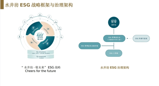水井坊一直以来重视可持续发展,始终将低碳环保理念融入业务发展与日常运营,提出了“水井坊·敬未来”ESG战略,并建立了由董事会监督、管理层推动的多层级治理体系。水井坊前瞻性地将可持续发展融入战略核心,于2022年发布了《水井坊2035可持续发展目标》,设定了26项可量化的具体目标,系统规划了减碳、资源循环等路径。邛崃全产业链基地正是绿色理念贯穿全周期的典范:沼气回收发电系统每年可供电459万千瓦时,覆盖厂区25%用电量;污水经处理后100%达标排放;废弃酒糟循环利用为优质饲料。其多栋建筑荣获国际LEED绿色建筑金级认证。