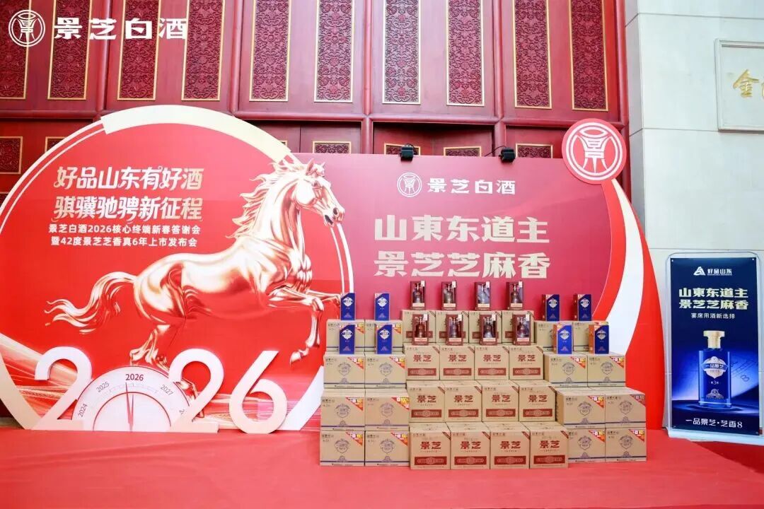 1月22日,好品山东有好酒,骐骥驰骋新征程——景芝白酒2026核心终端新春答谢会暨42度景芝芝香真6年上市发布会在济南山东大厦成功召开,济南区域经销商合作伙伴、核心终端客户等500余人到场参会,厂商携手共谋新一年高质量发展。