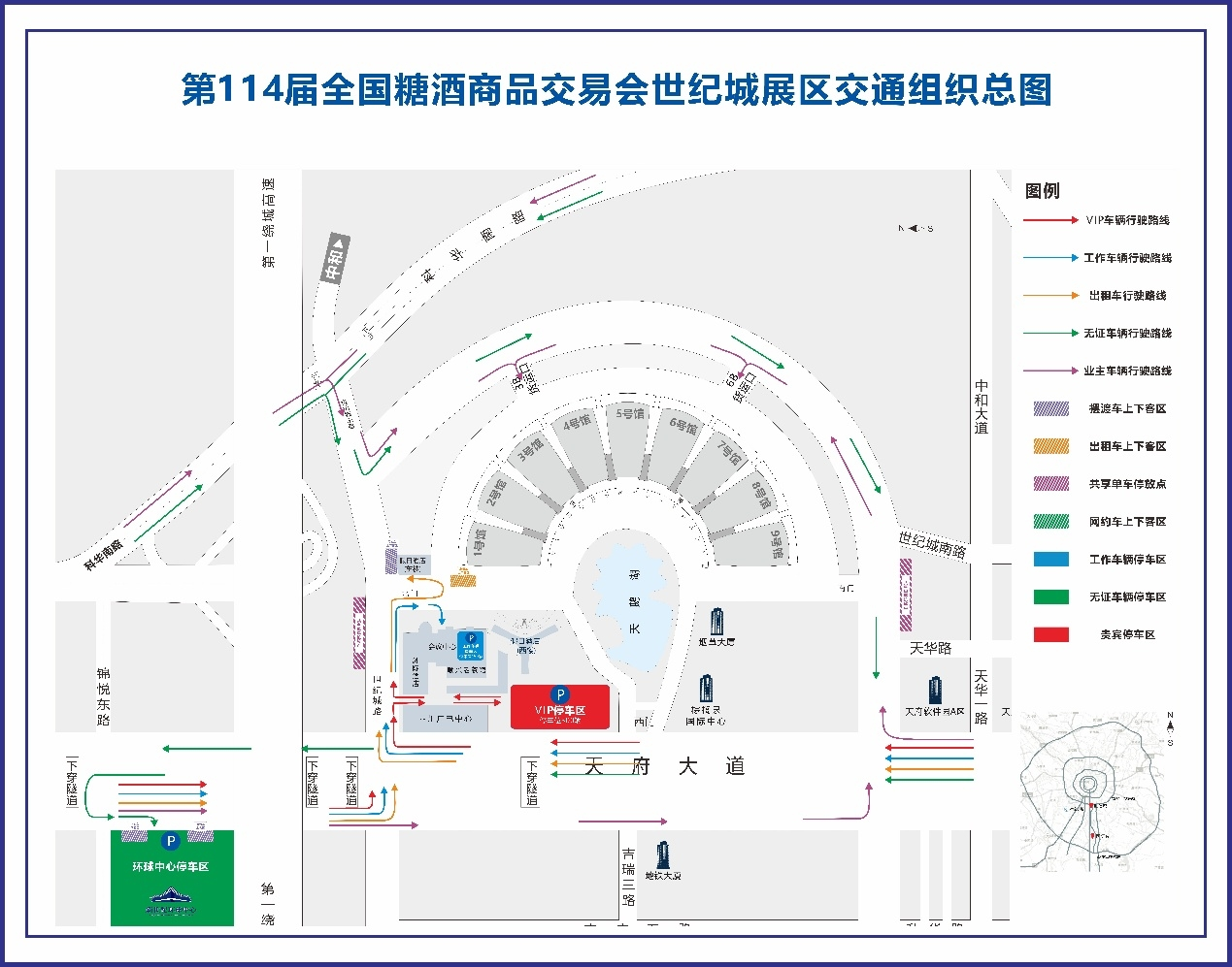 第114届全国糖酒商品交易会将于2026年3月26日至3月28日在中国西部国际博览城国际展览展示中心(以下简称西博城)、成都世纪城新国际展览中心(以下简称世纪城)举办,展览面积32万平方米。开展期间,预计参展人数较多,展馆周边道路拥挤,停车位有限,建议您乘坐公共交通绿色出行,并尽量错峰观展。