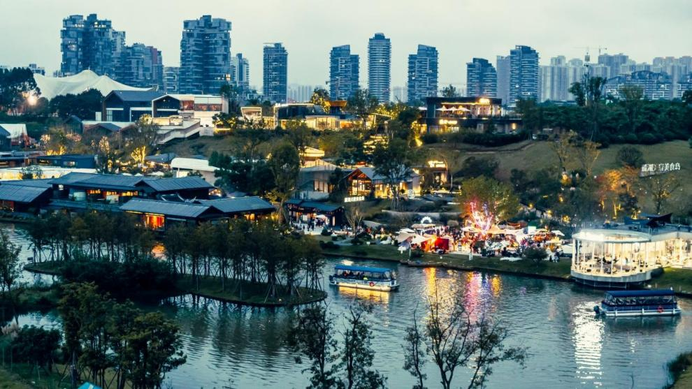 天府美食岛依托麓湖水城的湖泊与岸线的自然场景优势,以「美食」为主题的城市社交商业,构建了全国首座岛屿商业。同时孵化出城市级生活方式IP「岛集」,持续注入多元生活方式,构建更为立体、独一无二的岛屿社交体验。